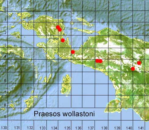 PAPUA LOCALITIES: New Guinea: Borme, Mt. Goliath, Ninay Valley, Nomnagihé, Upper Setekwa River, Mt. Siwi (Arfak), Utakwa River, Wendesi. Details in gazetteer.