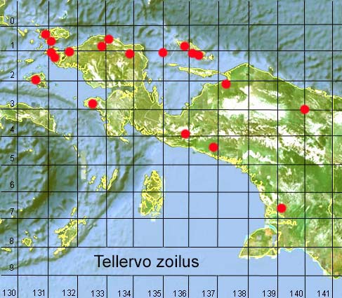 PAPUA LOCALITIES: Misool Island: Fakal; Waigeo Island; Batanta Island; Yakut River; Salawati Island; Numfor Island: Namber; Supiori Island: Korido; Biak Island: Wardo, Daruri; New Guinea: Fakfak, Katan (Mappi), Lereh, Malano, Modio, Mokwam, Senopi, Sorong, Tambrau Utara, Timika, Tubeya, Wanamowi, Waropen. Details in gazetteer.