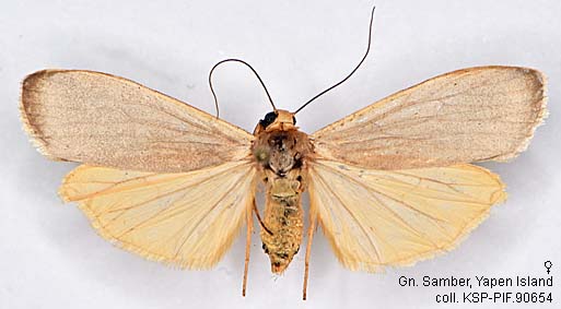 STATUS: The genus Eilema needs a thorough revision for the New Guinea species. It is to be expected that many sibling species will be discovered. Eilema plana is probably widely distributed but many look alikes may be misidentified among them.
