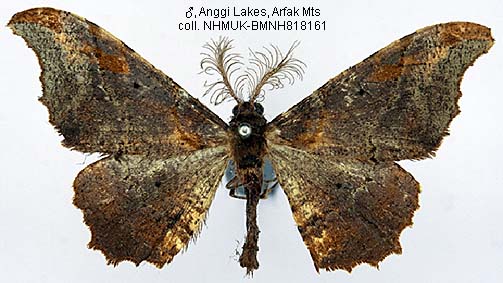STATUS: A rather rare and dark coloured species with a strong falcate forewing apex. Distinguishing is the dark ground colour with the rufous or black rectangular bar in the forewing cell.