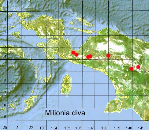 PAPUA LOCALITIES: New Guinea: Abmisibil, Enarotali, Mt. Goliath, Mt. Kunupi, Menoo River, Mulia Sinak, Paniai. Details in gazetteer.