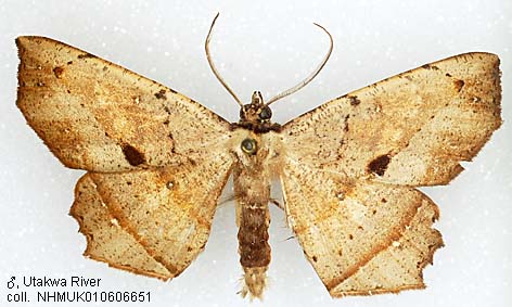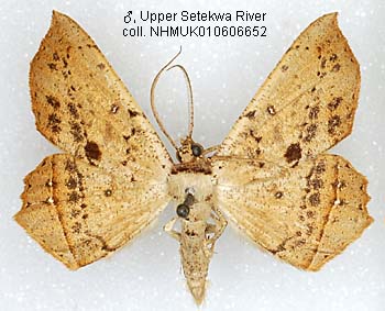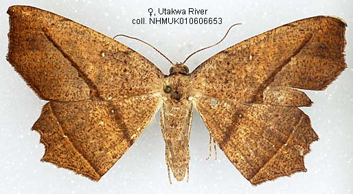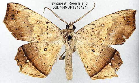 STATUS: Widely distributed in the western part of New Guinea. Seems a common species. Distinguished from the other species by the rather straight forewing margin with an angle in the middle, and often some white spots on de hindwing fascia.