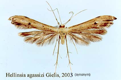 Adaina microdactyla Amblyptilia galactostacta Amblyptilia iriana Cosmoclostis hemiadelpha Cosmoclostis pesseuta Deuterocopus devosi Deuterocopus issikii Deuterocopus papuaensis Deuterocopus planeta Diacrotricha fasciola Diacrotricha guttuligera Exelastis pumilio Fletcherella niphadothysana Hellinsia agassizi Hellinsia biangulata Hellinsia carphodactoides Hellinsia iraneaus Hellinsia kaiapensis Hellinsia mesoleucus Hellinsia probatus Hellinsia tariensis Hellinsia wamenae Hexadactilia trilobata Lantanophaga dubitationis Lantanophaga pusillidactyla Leptodeuterocopus sorongensis Megalorhipida deboeri Megalorhipida leucodactyla Megalorhipida madoris Nippoptilia pullum Nippoptilia rutteni Nippoptilia spinosa Ochyrotica breviapex Ochyrotica buergersi Ochyrotica cretosa Ochyrotica misoolica Ochyrotica pseudocretosa Ochyrotica salomonica Ochyrotica toxopeusi Ochyrotica yanoi Oxyptilus causodes Platyptilia archimedon Platyptilia enargota Platyptilia microbscura Platyptilia molopias Platyptilia petila Platyptilia phanerozona Pterophorus albidus Pterophorus albidus Pterophorus aliubasignum Pterophorus lacteipennis Pterophorus leucadactylus Pterophorus niveus Sphenarches anisodactyla Stangeia xerodes Stenoptilodes taprobanes Tetraschalis lemurodes Xyroptila colluceo Xyroptila marmarias